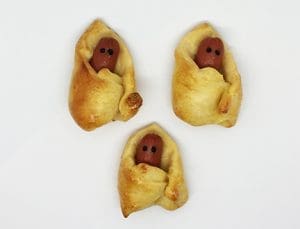 1. Préparez les collations avant la classe. Enrobez des mini-saucisses dans de la pâte Pillsbury. Faites-les cuire.