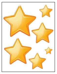 Imprimez préalablement sur du carton blanc les feuilles d’images d’étoiles. Découpez les diverses étoiles et attachez-les avec un trombone. Vous pouvez plastifier le jeu si vous voulez le garder pour les années suivantes. Préparez autant de paquets de jeu qu’il y a d’enfants dans votre groupe.
