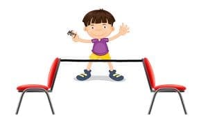 1. Tendez une corde entre 2 chaises à un bout de la classe.