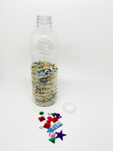 1. Avant la classe, mettez des bijoux dans la bouteille. Ensuite remplissez les bouteilles avec du riz.
