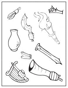 3. Dites aux enfants qu’ils ne doivent colorier que les objets dont Gédéon avait besoin.
