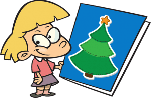 - Préparez des cartes en forme de sapin et découpez 3 sapins sur du papier de construction vert de 5cm x7 cm .