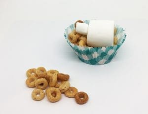 Avant le début de la classe, préparez des petits paniers de collation pour les enfants. Dans chaque moule à muffins, mettez des Cheerios, ensuite une grosse et une petite guimauve afin de former un petit bébé sur de la paille